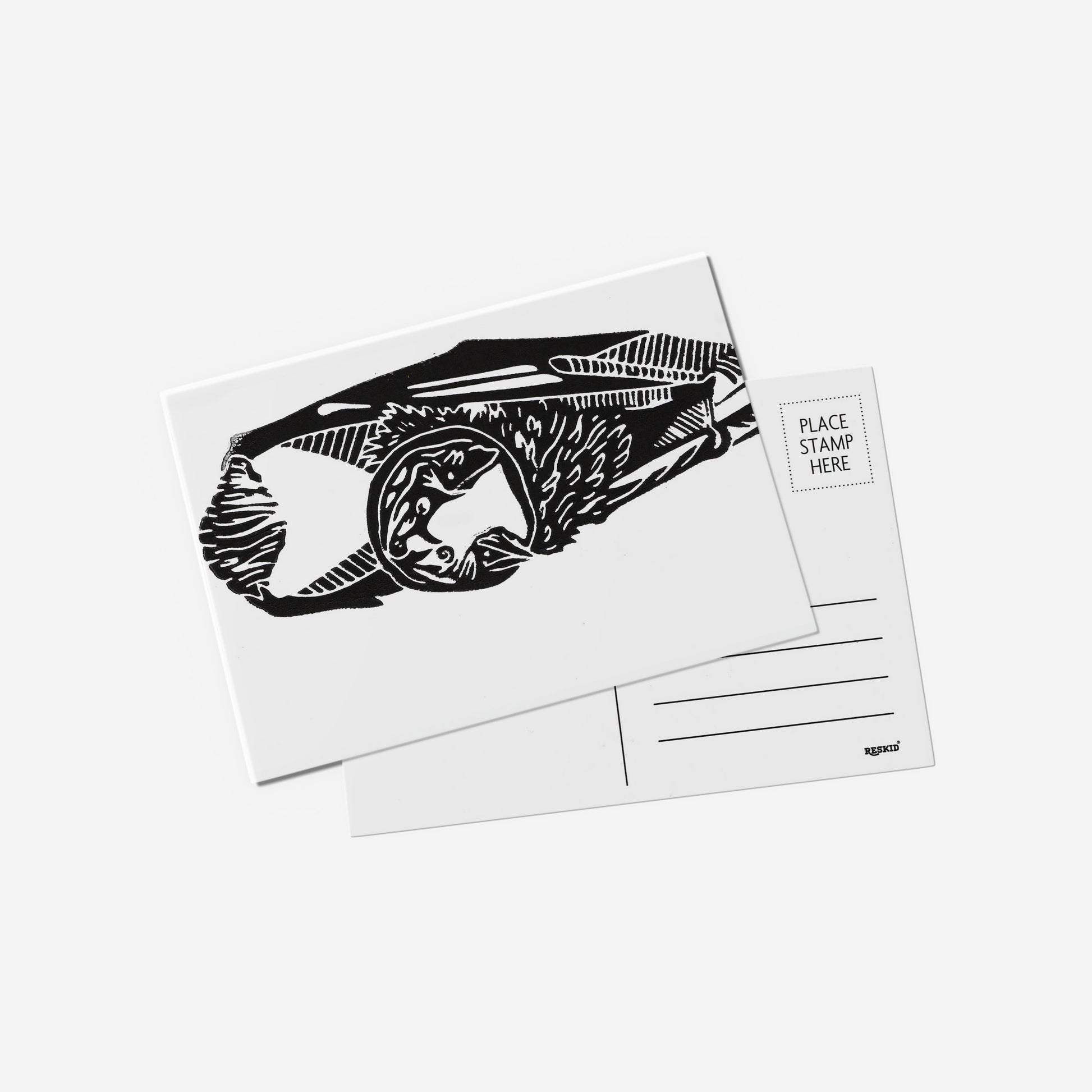 Brew up some frightful fun with this hand-printed Halloween postcard! Choose between two charming designs (or just collect them all!): a cozy bat sipping coffee or his snack-loving friend nibbling on a croissant. Whether you're sending chills or chuckles, they're the perfect way to share some haunted holiday cheer with friends and family.