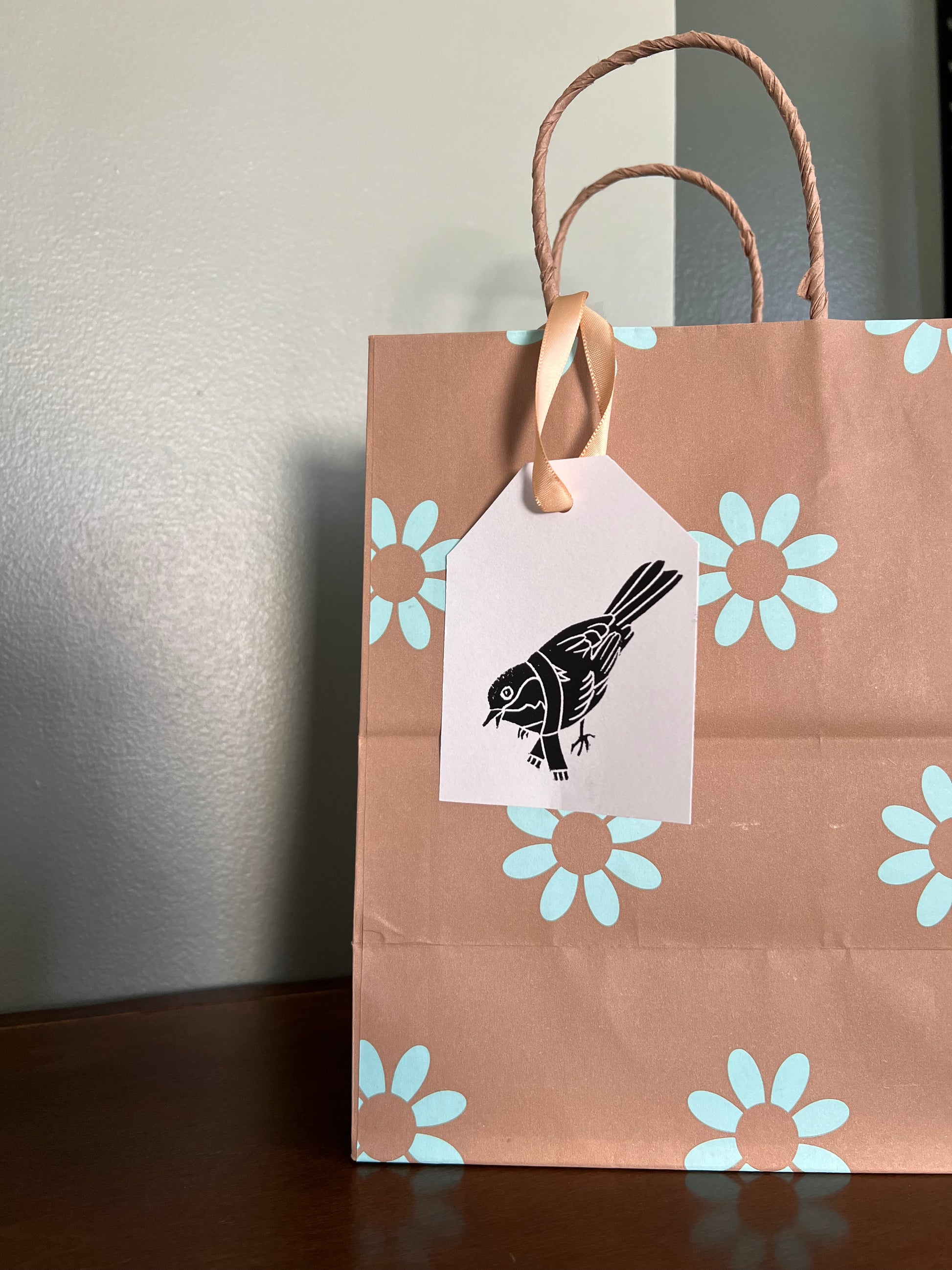 Set includes 6 assorted hand-printed tags